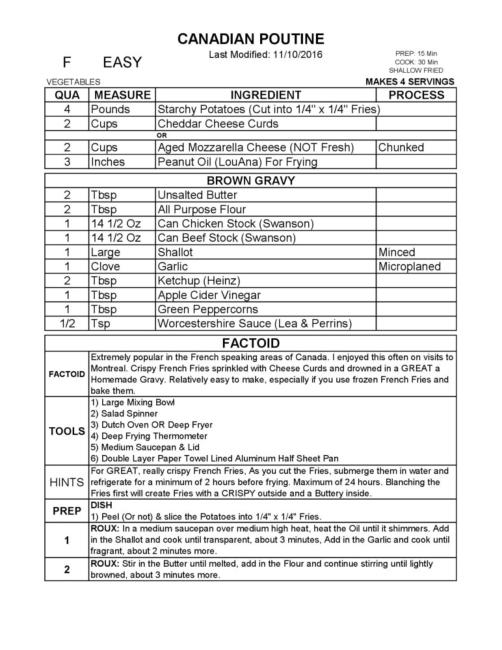 Homemade Gravy. Relatively easy to make, especially if you use frozen French Fries and