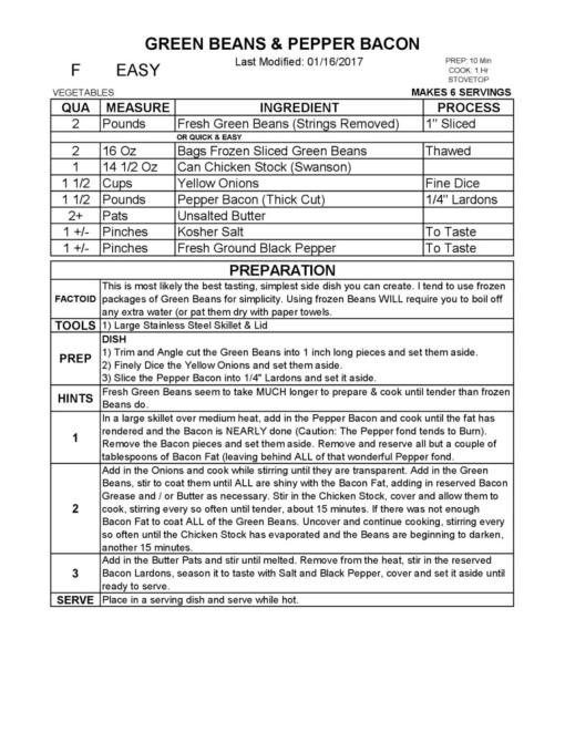 frozen packages of Green Beans for simplicity. Using frozen Beans WILL require you to